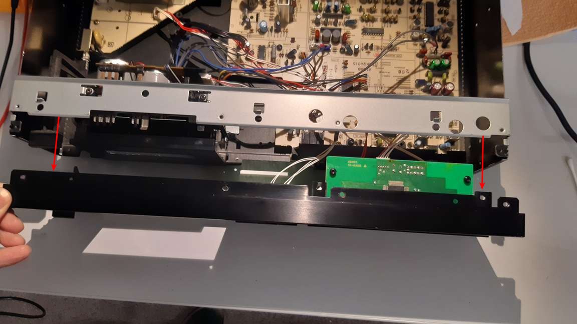 Pull the front apart. Take care for the display connector as the cable is quite short. You may place the front on top of the chassis like shown on the pictures.