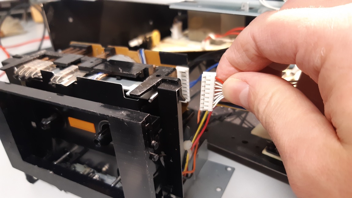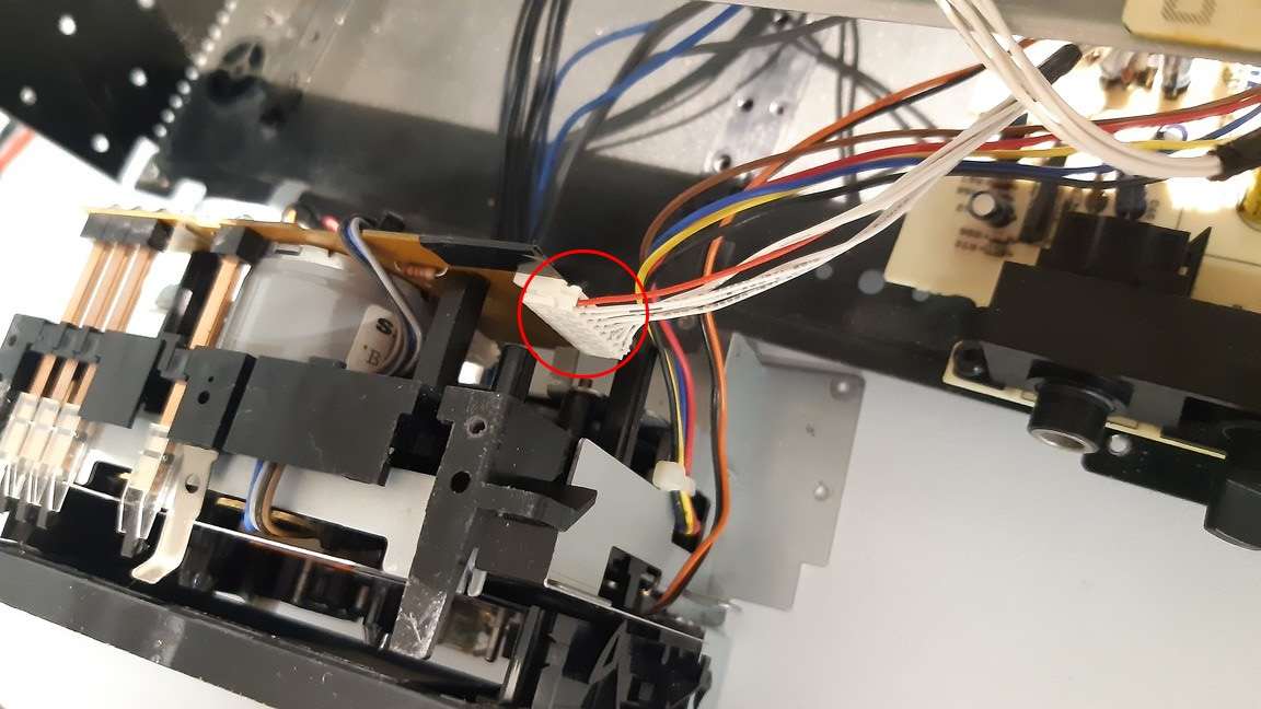 Finally the capstan plate can be removed and the belt can be replaced. Note: the cables on the side may get off easily. It happened to me twice. You may tape it or use a cable tie to prevent such accident.